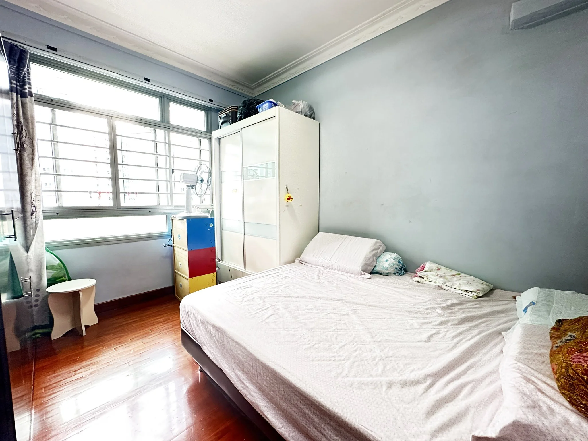 With minimal built-ins—limited only to the kitchen cabinets—you’ll save on hacking costs and have the freedom to renovate and design the interiors to your own taste. The layout is highly functional, featuring a spacious master bedroom that’s rarely found in newer Bukit Panjang flats, along with a proper dining area that’s thoughtfully separated from the living space. The large kitchen is ideal for families who love to cook, offering ample workspace and a long service yard for laundry and household needs.