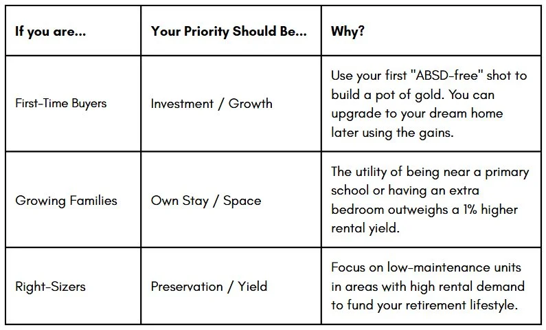 In the Singapore property market, the line between a "home" and an "asset" is often blurred. With high entry costs and the Additional Buyer’s Stamp Duty (ABSD), making the right move first is critical. Are you buying for comfort, or are you buying for growth?