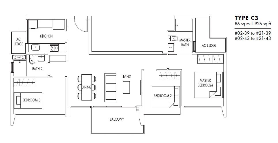 This well-kept 3-bedroom unit at Sol Acres (926 sqft) features a rare dumbbell layout, with only two such stacks in the entire development, making it a highly sought-after configuration. The home is tastefully renovated and in move-in condition, with regular-shaped bedrooms that maximise space and functionality. The wide living area extends seamlessly to the balcony, allowing plenty of natural light to flow through the unit, creating a bright and spacious atmosphere throughout the home.